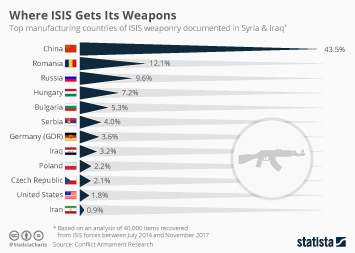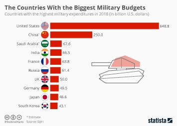 The research estimates that the Russian military has just over 30.3 million assault rifles, machine guns and handguns in its arsenal, just ahead of China's 27.5 million. Military firearms are also highly concentrated in North Korea with an estimated 8.4 million centrally controlled by the secretive country's armed forces. In the United States, the estimated total spread across the Army, Air Force, Navy and Marine Corps is far lower at just 4.5 million.