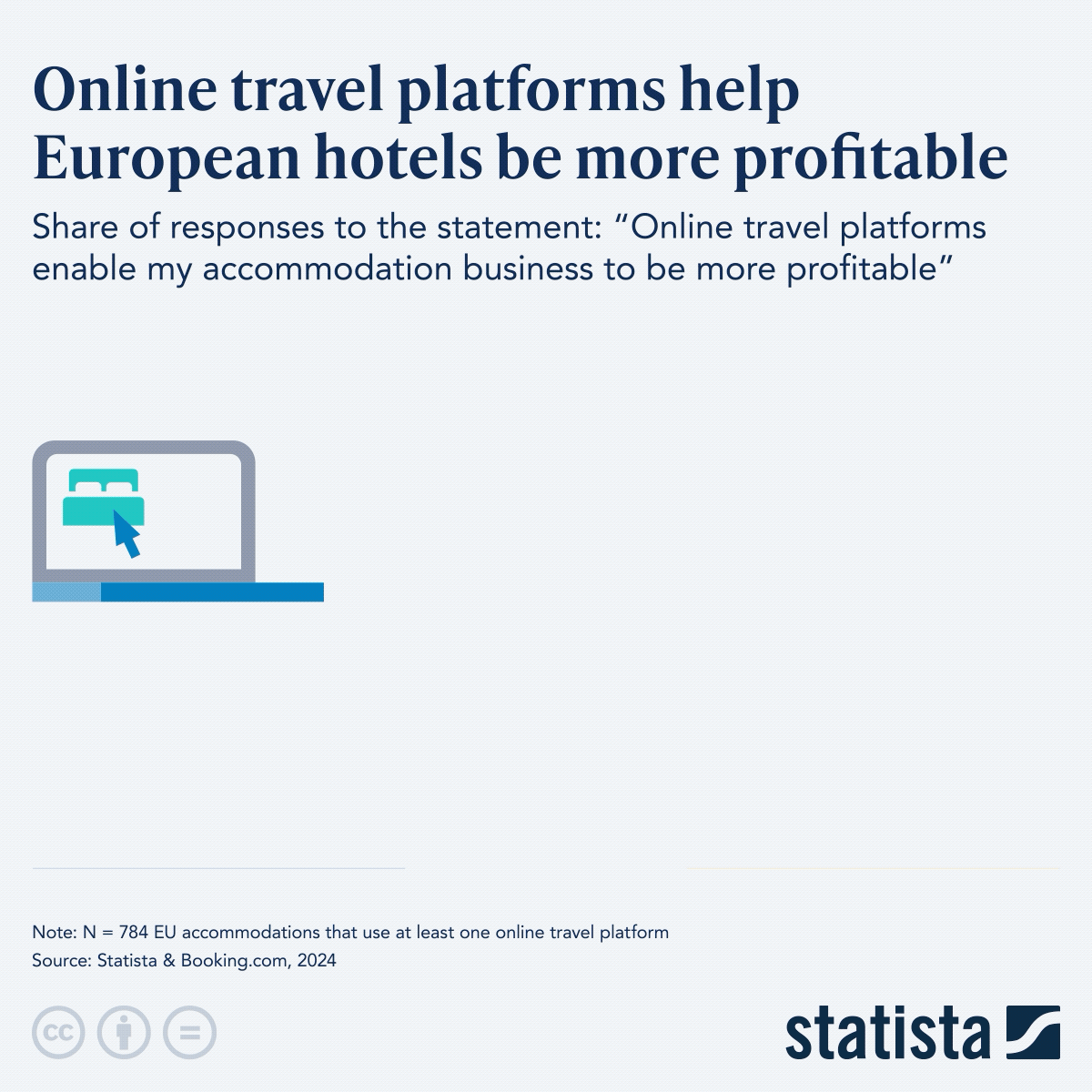 In a 2024 study of EU accommodation businesses conducted by Statista in collaboration with Booking.com, 74% of respondents indicated that online travel platforms made their business more profitable, only about a fifth felt neutral, and under 10% disagreed. This survey measured sentiment but also echoed the results of empirical research, which reached similar conclusions and was published in the industry's leading journal, Tourism Review.