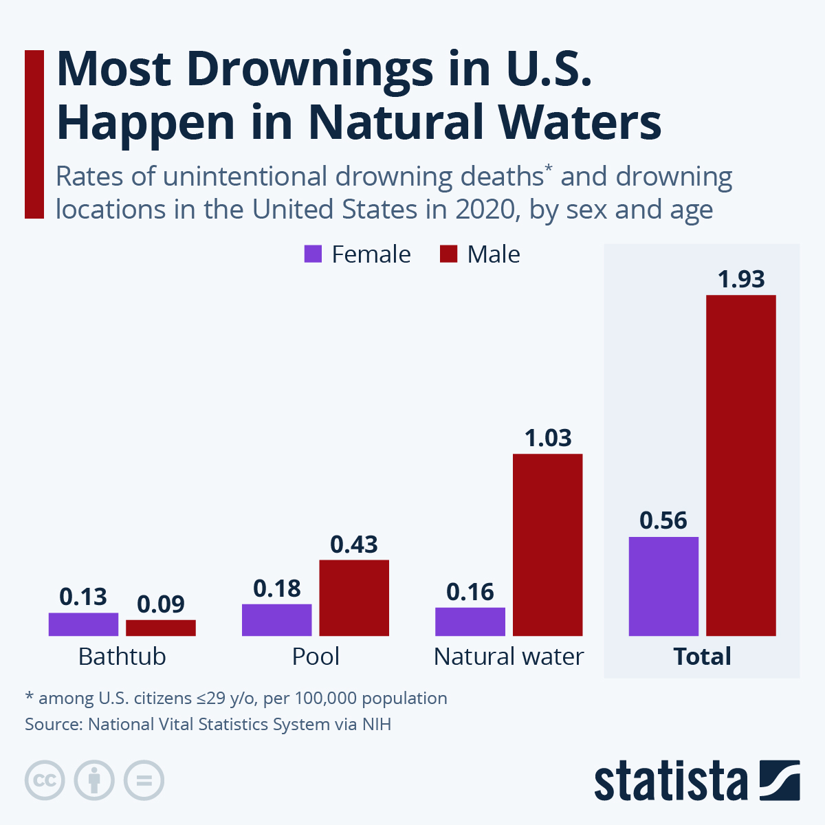Each year in the U.S. around 4,000 people die by unintentional deaths, while a further 8,000 people experience nonfatal drownings that require treatment in an emergency department, according to a 2020 analysis by CDC researchers. Drowning is one of the leading causes of unintentional injury death among people aged 29 years and younger in the United States.