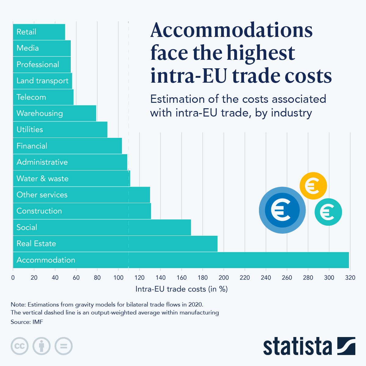 This infographic shows an estimation of the costs associated with intra-EU trade, by industry.