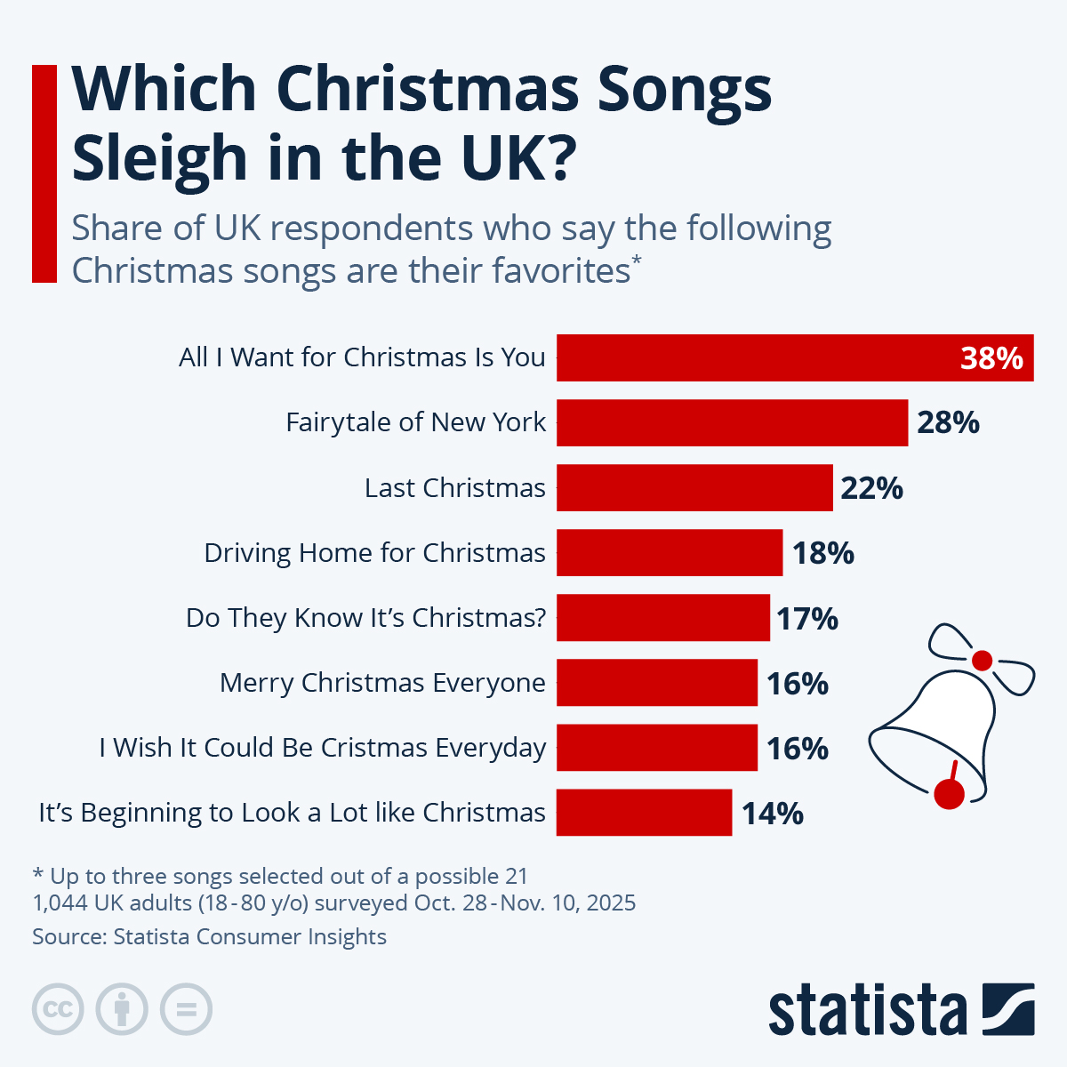 It turns out there’s only a few grinches out there when it comes to Christmas songs. According to a recent Statista survey, just six percent of respondents in the UK said they don’t like any festive songs at all. For the other 94 percent, it was possible to pick at least one Chrimbo tune they could get on board with.