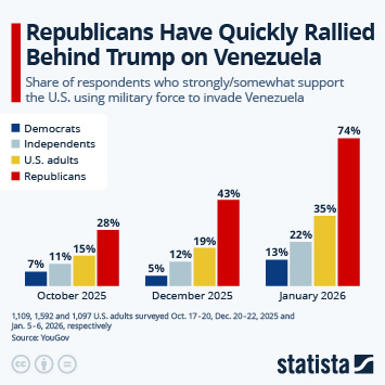 According to a recent YouGov survey, the majority of Americans also believe that oil was a major reason for the military action against Venezuela, although there is a stark partisan divide in what people believe the true motivations were. While Republicans largely follow the official party line, naming “preventing drug trafficking”, “removing corrupt leadership from power” and “preventing terrorism” as the three main reasons behind the military intervention, most Democrats believe that the operation was about three things: “increasing U.S. access to oil”, “distracting Americans from domestic issues” and “increasing U.S. power globally”.