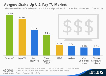 This chart shows the number of subscribers of the largest Pay-TV providers in the United States at the end of Q1 2018.