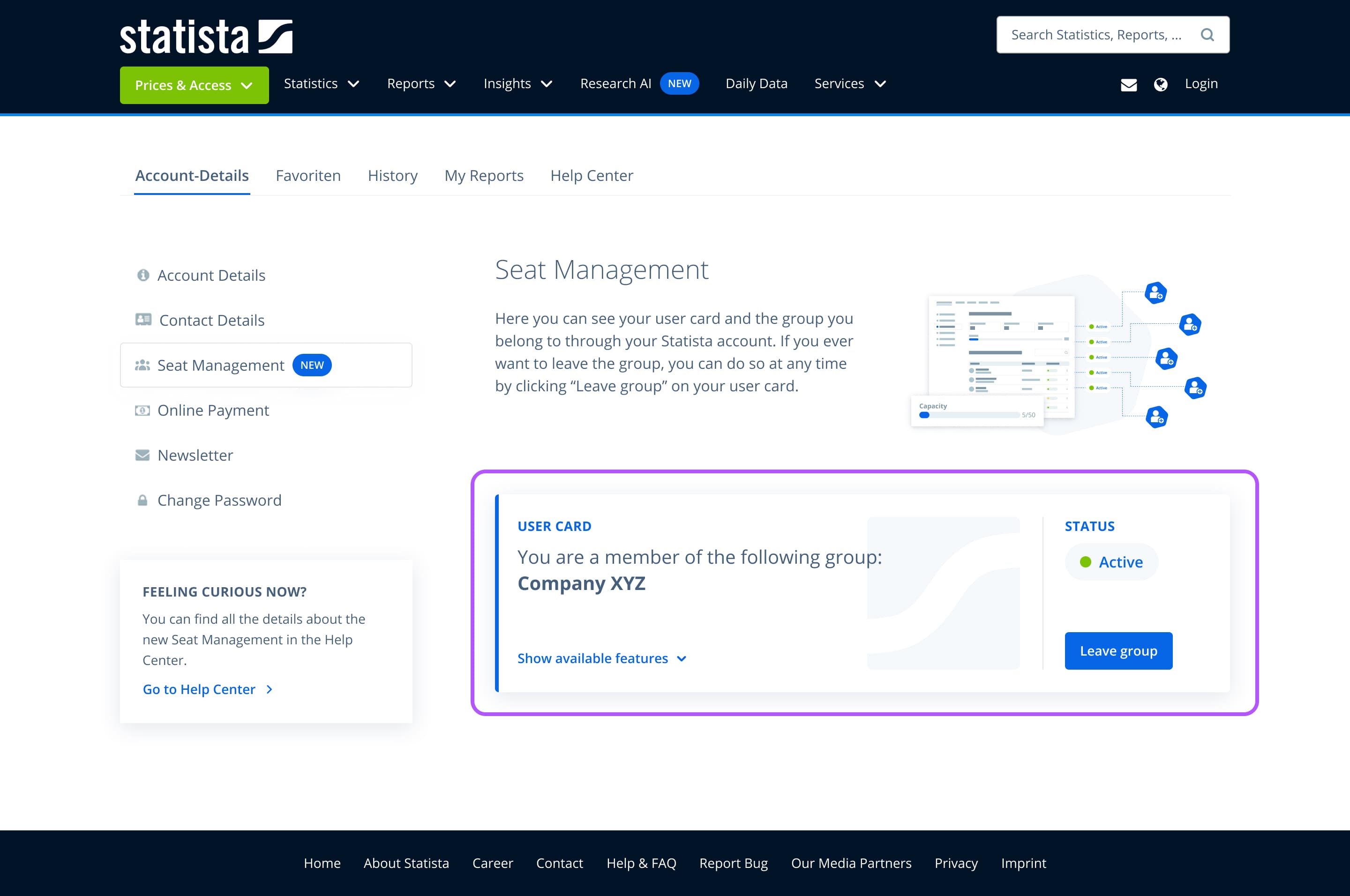 You’ll find your User Card under:My Account → User Management. Here you’ll see your group membership and access details, which we’ll explain in more detail below.